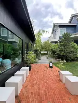 A Life cafe in Chiang Rai stands out with its minimalist décor, combining Japanese influences. The shop's clean white building contrasts beautifully with the surrounding green rice fields, creating a relaxing and soothing atmosphere. The most striking feature is the rice field views, which can be seen from every angle. There are both indoor seating areas with large glass windows and outdoor seating areas with various corners for taking photos.