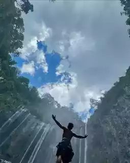 09:00 Arrive at Sewu Waterfall scenic area, start hiking; along the way, you will climb bamboo ladders, trek upstream, and pass through water curtains