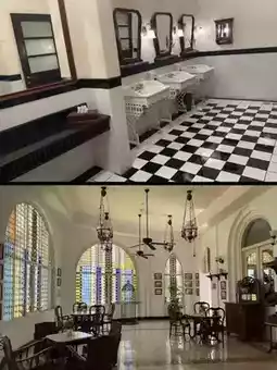 The interior decoration of this hotel is also very retro🏛️, showing the style of the former Dutch colonial period, with mosaic tiles and stained glass windows everywhere, and the furniture is also the classic 19th-century Nanyang style. You can wear some light-colored retro clothes🥼, which will blend in well with the atmosphere here.