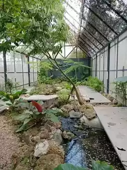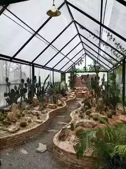 The garden is divided into separate domes: a pet dome, a cactus plant dome, and a beverage building.