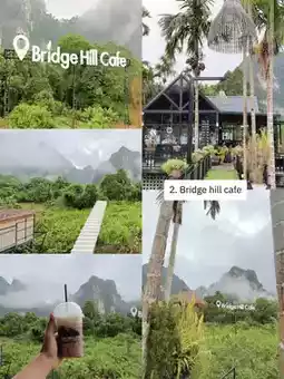 2. Bridge Hill cafe This cafe is also located on the road of Surat Thani-Khao Sok. It will be right on the curve and the bridge. For those who have pressed the map, slow down before reaching the shop. The mountain behind this cafe is very beautiful. It is high and contrasts with the white fog. The drink menu is not very expensive. Foreign tourists like to come and sit and have coffee and enjoy the view.