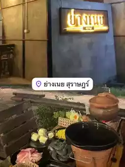 Evening: End the day with a delicious dinner at Yang Ney Surat Thani 🔥🧀 Enjoy delicious grilled meat with fragrant butter and fresh seafood. It's a perfect way to end a day of travel. 😋🎉