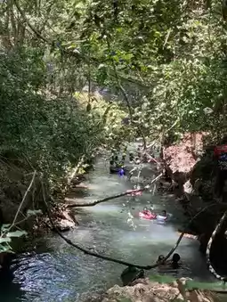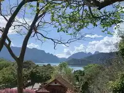 - On the second day, we left the city to visit the Ratchaprapha Dam. On the way, we stopped to pay respects at Wat Thung Siat and played in the clear water at Khlong Nam Sai. There were a lot of people during the festival. The water was really clear. This is another place I recommend visiting. When we arrived at the Ratchaprapha Dam, it was very beautiful. The view was good, the atmosphere was good, and the water was very beautiful. On the way, it was surrounded by mountains. It was a pleasant view. Many people went there. Don't miss this place. (They also have a boat ride to see the island, but we didn't have much time.) ⛵️