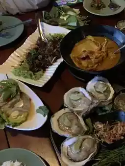 - On the first day, we paid respects at the City Pillar Shrine. It was very beautiful. At night, the lights were turned on. We took my father to eat by the Tapi River at Riverside Restaurant. The atmosphere was very good. We could see the view of the Naris Bridge with its beautiful lights.