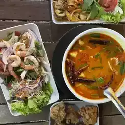 A riverside restaurant with a great atmosphere, this cafe and chill-out spot in Surat Thani offers a wide variety of food and drinks, with a camping-like atmosphere. The restaurant offers delicious food and drinks.