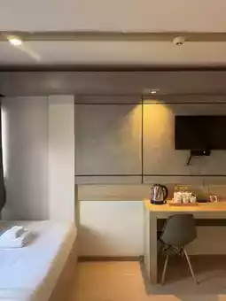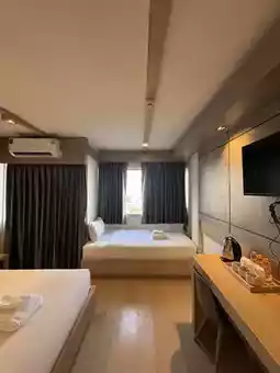 B2 Boutique Surat Thani is a hotel that caters to travelers seeking affordable comfort. Located near the city center, it's easily accessible. Rooms are decorated in a simple, modern style, yet fully equipped. The interior is clean and comfortable, with comfortable beds and complete amenities including a TV, kettle, and free drinking water. The lobby is beautifully decorated and airy, flooded with natural light, creating a warm and welcoming atmosphere from the moment you step inside. It's perfect for both travelers and tourists seeking quality accommodation at a friendly price.
