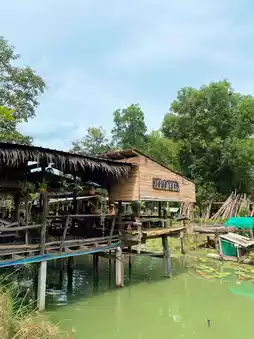 The cafe features both a riverside area and an air-conditioned upstairs area.