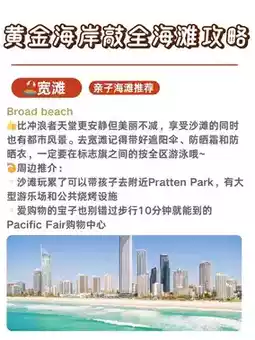 Quieter than Surfers Paradise but equally beautiful, offering both beach enjoyment and city views. When visiting Broadbeach, remember to bring a sun umbrella, sunscreen, and sun-protective clothing, and always swim within the flagged safe zones~