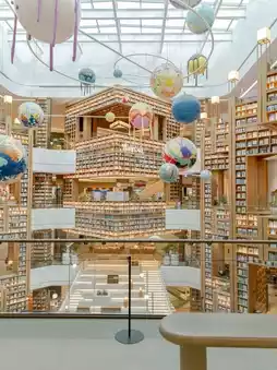Go on a free indoor date at Byeolmadang Library, which has become a hot spot in Suwon since its opening. You can sit, read, work on your laptop, and even take amazing photos for free! 🌟💛