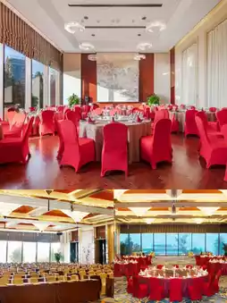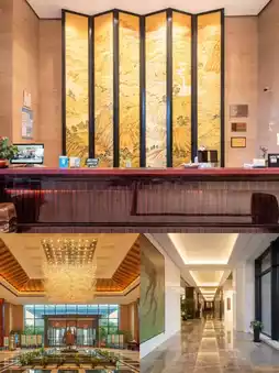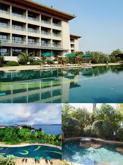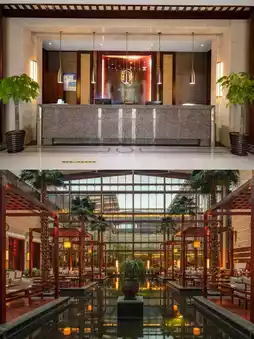 The hotel is huge, right by East Taihu Lake, and there's a lake inside the hotel too. The lake is full of lotus flowers π·, and there's a zigzag bridge and a walkway. The night views are beautiful. You can see the lake views π΄, fishing boats, and yachts π€, as well as peacocks, goats, rabbits π, and squirrels πΏοΈ.