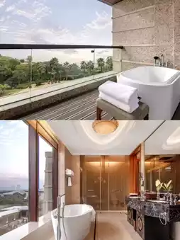 The hotel is surrounded by lawns π, plants π, and the lake. You can soak in the hot springs by East Taihu Lake, take a walk or ride a bike π² in the hotel garden, and enjoy family time. All your worries will melt away. βΊοΈ