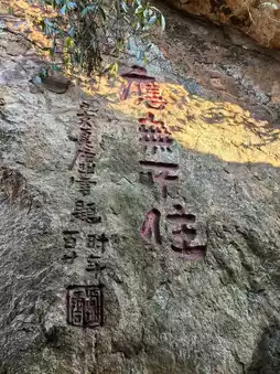 Yonghui Zen Temple is located on the top of Shibi Mountain. It is said that in the third year of the Longqing period of the Ming dynasty (1569), Master Hanshan came here to build a hut, and it gradually became a famous scenic spot. Today, there is still a huge stone on the top of the mountain, with the words "Hanshan Platform" engraved on it, because there was a place where Master Hanshan meditated and practiced beside the huge stone. This is a small mountain range protruding into Taihu Lake, with a winding shape, extending into Taihu Lake, like an island on the water. There is a depression on the east side of the mountain top, surrounded by stone walls like a knife, more than ten meters high. Yonghui Zen Temple is built in the "stone wall nest". The inscriptions of celebrities add a strong historical and cultural flavor to the scenic spot. The plaque of "Daxiong Hall" signed by Zhao Puchu (Vice Chairman of the National Committee of the Chinese People's Political Consultative Conference) is hung high in the temple. At the back door of Yonghui Zen Temple, there is an 800-year-old photinia tree, rooted in the cracks of the stone wall, with half of its roots in the cracks and half exposed outside. Because the tree trunk and roots are clearly presented to tourists, and they are close to the steep stone wall, like a dragon lying down, like a giant python circling, with an advantage, it stretches straight to the top of the cliff, showing a piece of green. As soon as you enter the temple, two ginkgo trees one zhang apart are very eye-catching. These are two ginkgo trees from the Ming dynasty. The one on the right is female, and the one on the left is male. Two people hug each other. The "marriage" of this pair of male and female ginkgo trees has lasted for more than 500 years, and they should have many descendants.