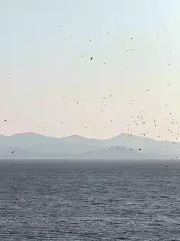 On the water-viewing platform in front of the temple, you can look at Yugang Village. Now there are many red-billed gulls. These elves on the sea often appear here. Order a cup of tea and watch the red-billed gulls quietly. The sunset is beautiful, and I really love the life here.