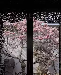 It is a very rare garden in Suzhou. The magnolia under the white walls and black tiles of the free garden has a Jiangnan charm.