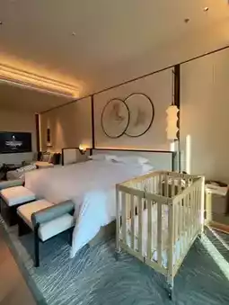 👨👩👧👦 The private hot spring room is perfect for families with kids! You can soak in the hot spring in the room, and there are starry sky hot springs and outdoor hot springs on the first floor of the lobby, as well as a heated pool. The water view in the courtyard is beautiful, and there are ducks and swans for the kids to feed 🦢 The service is also very attentive, you can request a second cleaning of the bathtub and hot spring, and you'll receive a gift when you check out~
