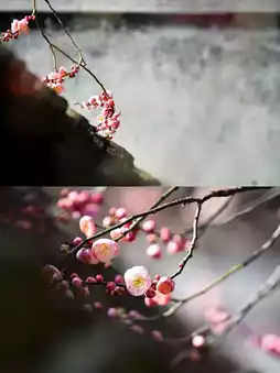 2. Plum Grove Path: Capture the extension of the plum blossoms and winding paths from a low angle.