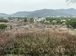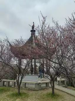 Ascending the steps within the scenic area, I came across Wenmei Hall, Plum Blossom Pavilion, and Wanghu Pavilion. I sat quietly in Wenmei Hall, closing my eyes as the gentle breeze carried the delicate scent of plum blossoms. The roof, windows, and floor of Plum Blossom Pavilion are all adorned with plum blossom motifs. From atop Wanghu Pavilion, the panoramic view of the plum groves blending seamlessly with the distant mountains and lake is truly stunning.