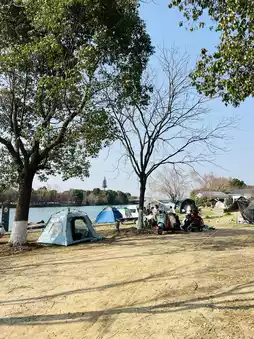 4️⃣ Enjoy stunning views of Dushu Lake and find trees perfect for hanging hammocks.