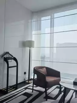 The room has large floor-to-ceiling windows on two sides. The white curtains and sheers can be controlled electronically, which is very convenient. I didn't notice it at night when I checked in, but during the day, I found that the right side of the room actually has a view of East Taihu Lake.