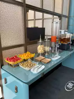 The lobby also has a tea break corner with fruit, hot tea, coffee, and other amenities. It's quite well-equipped.
