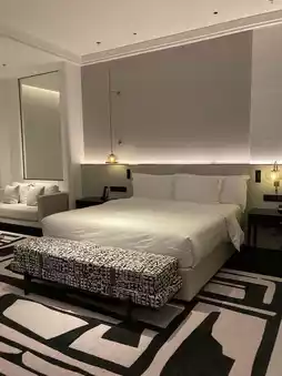 The suite is very spacious, divided into living and bedroom areas. There's a bathroom near the entrance, so two people checking in together don't have to worry about fighting over the bathroom 😂.