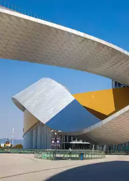 • The Art of Structure and Mechanics: To achieve this unique curved shape, a complex steel truss structure was employed. Two high and low steel ribbons intertwine, with the high ribbon spanning 100 meters and the low ribbon stretching 370 meters, representing the longest span and length of steel ribbons in China. This innovative structural design not only ensures the building's stability but also endows it with a sculptural artistry.
