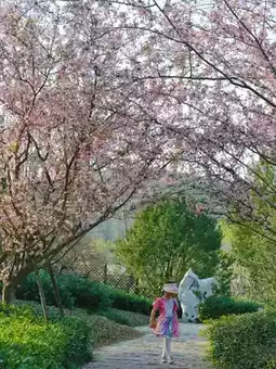 Jiangsu Garden Expo Park 🚘 It is recommended to enter the park from Xiping Gate, which has convenient transportation and many shuttle buses. Take the March limited "To Spring" themed carriage train (CNY 30/person) through the Sakura Avenue. The most amazing thing is the sakura tunnel you encounter at the corner. The branches are intertwined into a pink dome, and the fallen flowers are colorful when the wind passes, as if you have traveled through a time and space gate and entered a fairy tale world.