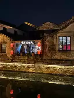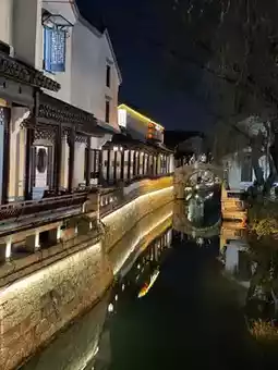 Shantang Street: Lanterns are hung high at night, and you can go boating on the river to experience the Jiangnan water village style.