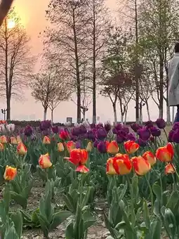 ▫️ Color matching: Purple tulips + lake reflection = Monet's Garden visual sense