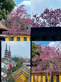🌸Dinghui Temple: ✔️There is a solitary purple magnolia tree, matched with the yellow walls and light of the temple.