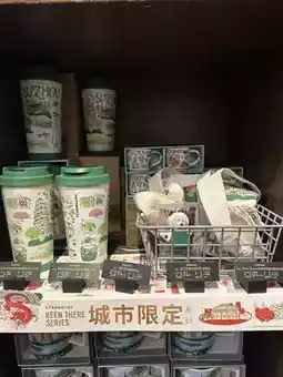 Starbucks in Suzhou sells limited edition mugs and tumblers with motifs of local culture and scenery. For example, there is the "Been There Series" mug that incorporates Suzhou's traditional embroidery and gardens into the design, making it a perfect travel memento or souvenir.