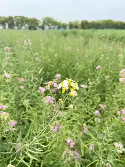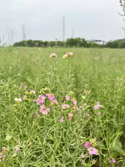 💐Most of the rapeseed flowers had already gone to seed, but upon closer inspection, we could still see the brilliant seven colors at the top of the rapeseed flowers, a mix of yellow, orange, purple, pink, and white. At least we got to see some color.