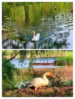 The sparkling lake surface has its own soft light filter, and swans that are about to take flight occasionally pass by. Their elegant figures are reflected in the lake. Any video you record can go viral on social media! It is recommended to come in the evening, when the sunset dyes the sky orange, which complements the lake surface, creating a full atmosphere~