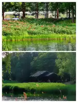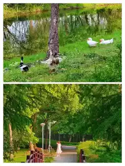 The moment you step into the park, it's like pressing the pause button on life! The vast grassland is like a soft green carpet, and the sunlight shines through the mottled shadows of the trees. Every shot you take is like a scene from a movie. In the clear blue sky, white clouds float slowly, and you can hear the crisp chirping of birds. Even the air is filled with the fragrance of flowers and plants. Sit by the lake and daydream, and your worries will instantly disappear!