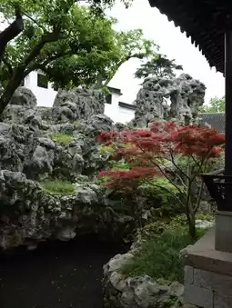 • Water Features: The clear pond in Huanxiu Mountain Villa occupies one-third of the garden's area. The irregularly shaped pond complements the rockery perfectly. The pond banks are piled with Taihu stones to create mountain streams and steep cliffs, appearing naturally formed. Walking along the pond, you can enjoy the fish swimming in the water and the reflections of the rockery and pavilions, experiencing the gentle and vibrant beauty of Jiangnan water towns.
