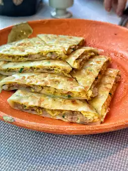 - **Egg & Meat Wheat Pancake**: A Linhai specialty, tried for novelty but not particularly remarkable.