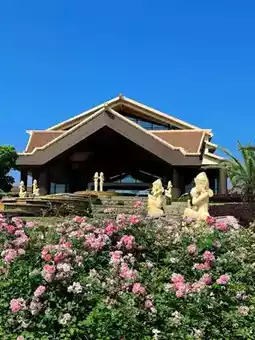 Spanning an impressive 40,000㎡, the hotel features picturesque gardens and lawns that change with the seasons: vibrant blooms in spring, lush greenery in summer, fiery red leaves in autumn, and warm sunshine in winter. Its distinctive Southeast Asian-inspired design is eye-catching, with red-roofed buildings seamlessly blending into the landscape. The main entrance, adorned with triangular roofs, palm trees, a scenic pool, and sculptures, exudes tropical island vibes, making you feel as if you've landed in Thailand. The lobby astonishes with its triple-height design, while the floor-to-ceiling windows at the lobby bar frame uninterrupted views of Yangcheng Lake. Sipping a drink here evokes the same relaxation as being at a seaside resort in Sanya.