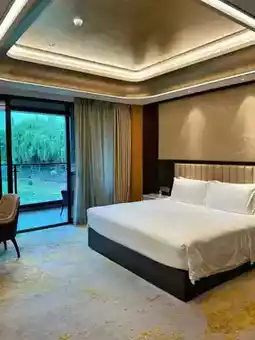Stepping into the hotel, you’ll be greeted by a 45,000㎡ private garden that resembles a natural oxygen bar, instantly shielding you from the outside hustle and bustle. Designed with traditional landscaping techniques, the garden features hundreds of rare plants, with picturesque scenes like small bridges over flowing water, shaded pathways, and lakeside tea pavilions at every turn, exuding the charm of Jiangnan. Each season brings its own beauty: blooming flowers in spring, lush greenery in summer, fragrant osmanthus in autumn, and snow-covered landscapes in winter—ensuring poetic scenery year-round. The hotel also boasts a carefully crafted lakeside promenade, perfect for strolls or cycling, where you can enjoy the shimmering Taihu Lake on one side and the verdant garden on the other. The fresh air and breathtaking lake views create a serene, almost otherworldly experience.