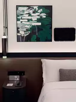 The hotel features 178 guest rooms and suites, with 90% offering private balconies or courtyards, starting from 48㎡. Rooms are equipped with SONY TVs, GENEVA sound systems, and capsule coffee machines. The minibar's first round is complimentary, and amenities are from Dutch brand Atelier Bloem.