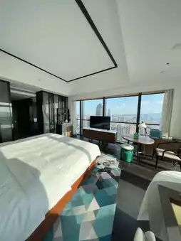 🏨Blown away by the hotel's details! Inspired by the "Prosperous Suzhou" painting, the lobby features Suzhou embroidery screens, rooms have ink-wash murals, and even the elevator buttons exude Jiangnan charm. The rooms blend modern style with ancient elegance, with 270° floor-to-ceiling windows framing views of Gusu and the canal. Watch stunning sunsets from bed—need I say more?