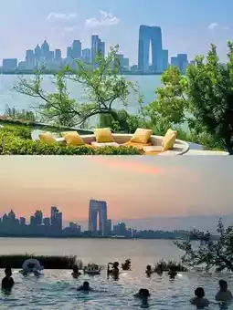 Secluded Island Retreat: Private isle on Jinji Lake, rooms/infinity pool facing the "Eye of Suzhou" Ferris wheel—unbeatable sunset views.