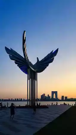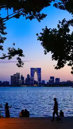 📍Jinji Lake: Best visited at dusk to watch the sunset and the lighting of the "Big Pants" (Suzhou Center) 🌅