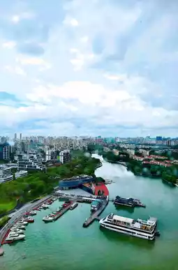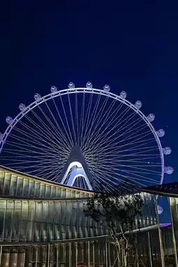 1⃣ Facilities: Standing 128 meters tall as "Asia's largest water Ferris wheel," it features space capsule designs offering 360-degree panoramic views of Jinji Lake. Equipped with 28 panoramic glass-walled capsules (25 people per capsule, ~28 minutes per rotation), each maintains a constant 26°C temperature. Six themed capsules (e.g., conference room, bar, couples' cabin) cater to business and social needs. The base features an LED light system synchronized with Jinji Lake's musical fountain.