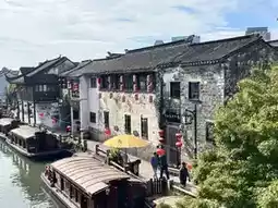 The hotel cooperates with a bike rental service. Ride along the ancient canal greenway for 30 minutes to Panmen Scenic Area, where you can play “City Guard Soldier” role-play under the water-land city gate ruins and climb the Ruiguang Tower to overlook Suzhou city views. On the way back, experience a short rowboat trip at the canal dock for 10 yuan per person. The boatwoman softly sings folk tunes, and the cool breeze completely dispels the summer heat.
