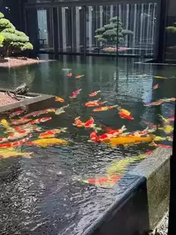 The most famous feature is probably the century-old Japanese black pine in the courtyard, along with the plump koi fish in the pond, definitely worth seeing.