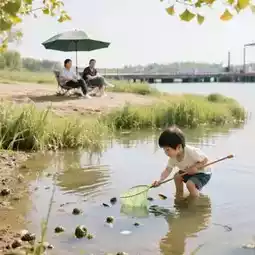 - Shallow Fish Catching Area: Next to Ginkgo Wharf, the ecological shallow water is only 30 cm deep, with free fish nets provided (50 RMB deposit). Children can catch small fish and observe snails while parents rest under umbrellas.