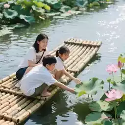 - Boat Types: Electric boats (40 RMB/person) are suitable for the whole family to leisurely enjoy the scenery, passing spots like "Lotus Breeze Bridge" and "Bird Watching Platform," with the boatman explaining lotus varieties; bamboo raft drifting (50 RMB/person) is more immersive, allowing you to touch lotus leaves, recommended between 9-11 AM when the light is soft and perfect for photos.