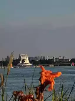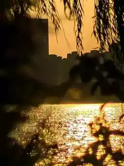 🌿 Hidden Beauty: Through reeds, branches, and wildflowers, the lake transforms into a canvas of golden light, reflecting the city’s silhouette in shimmering ripples.