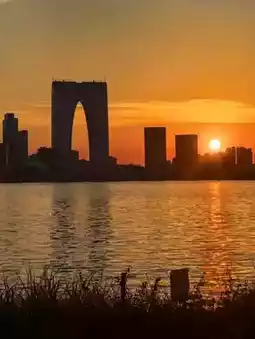 🚤 Lakeside Vibes: Sailboats drifting across the horizon, skyline shadows glowing orange, and the soft evening breeze make this one of Suzhou’s most romantic spots.