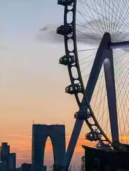 🎡 City Icons: The giant Ferris wheel and the Gate to the East (“pants building”) frame the sunset perfectly—an urban-meets-nature scene that feels cinematic.